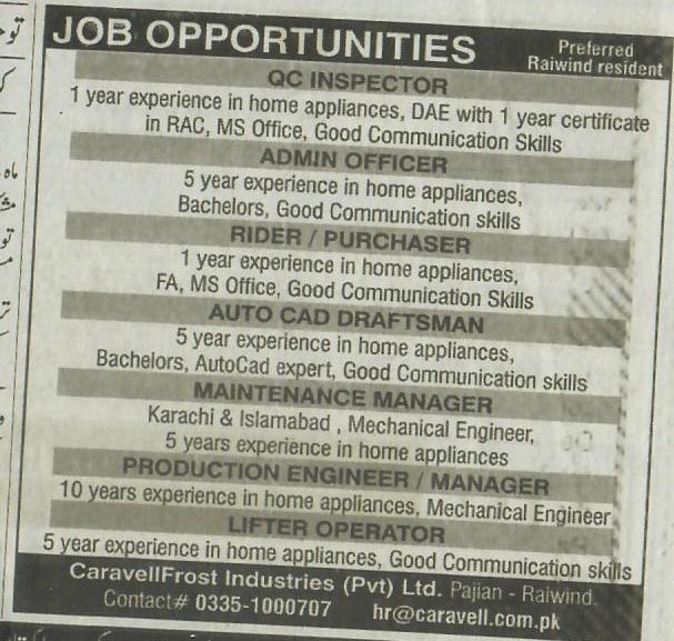 Send CV to hr@caravell.com.pk
