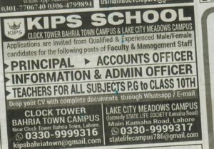 The KIPS School Lahore, has announced multiple vacancies for 2025, offering excellent career opportunities for both male and female candidates across various departments. These jobs are a golden chance for individuals seeking stable and growth-oriented careers in the Private Sector.